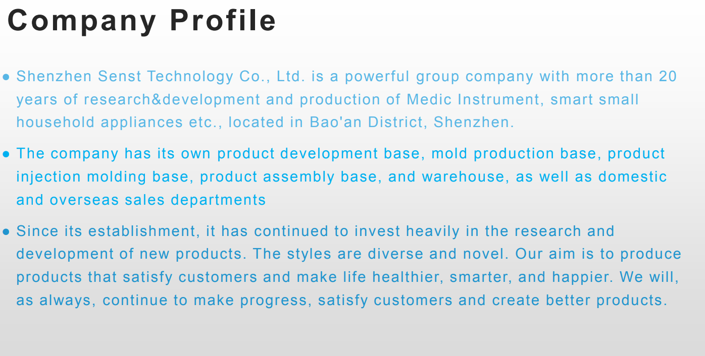 The company is located in Shenzhen, the capital of product R&D center.