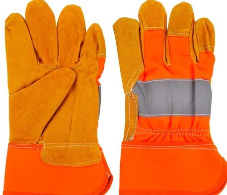 Reflective Orange Back Leather Work Glove