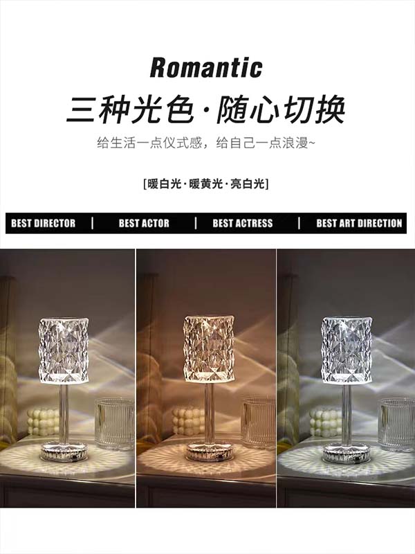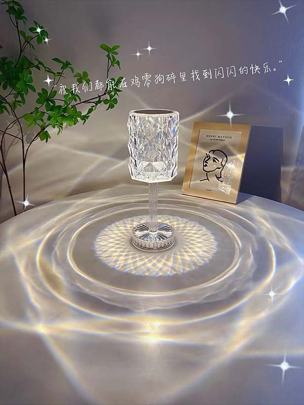 卧室水晶台灯网红玫瑰氛围灯充电LED床头灯创意ins少女轻奢浪漫小夜灯
