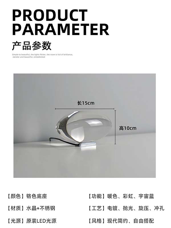 • 材质:: 水晶、不锈钢