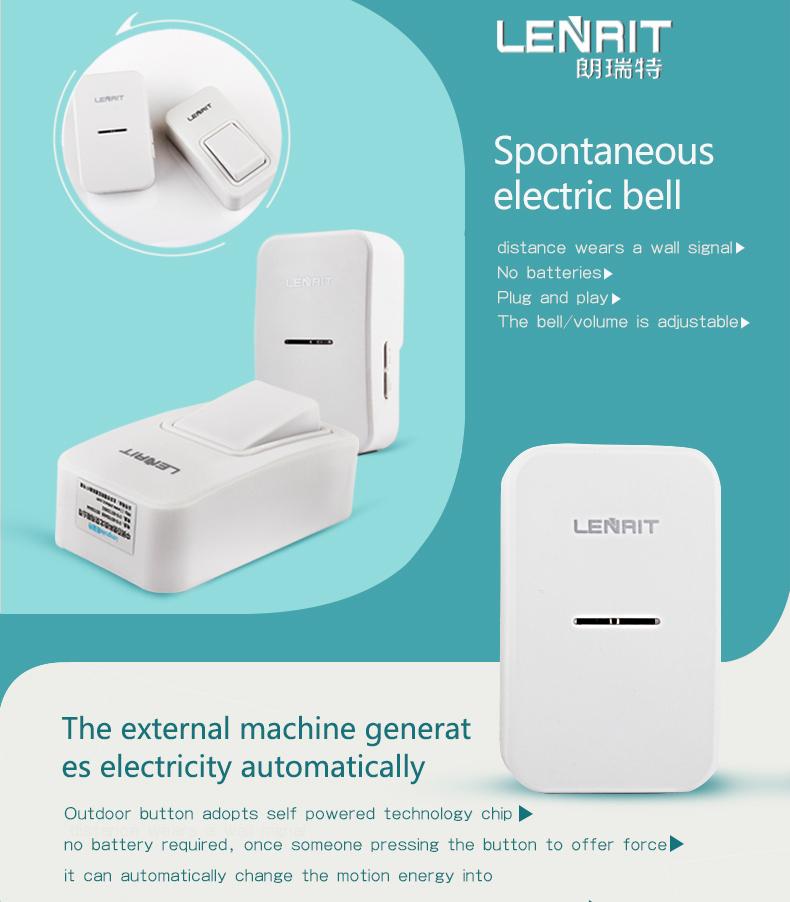 Wireless Doorbell No Battery 3 Levels Adjustable 38 Tunes ABS Flame Retardant Ma