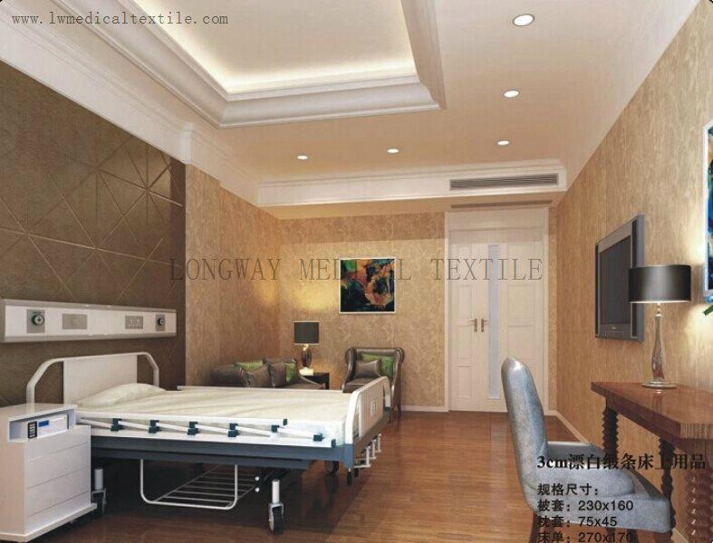 Various materials available for hospital bed linen. It can be pure cotton or polyester cotton, usually T65/C35.