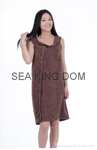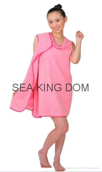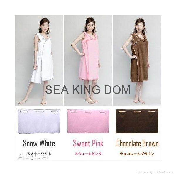 The Wearable Towel has three arm openings placed along the side and does not employ the use of any fastener. The Wearable Towel is unisex and can be bath towel, beach towel, etc