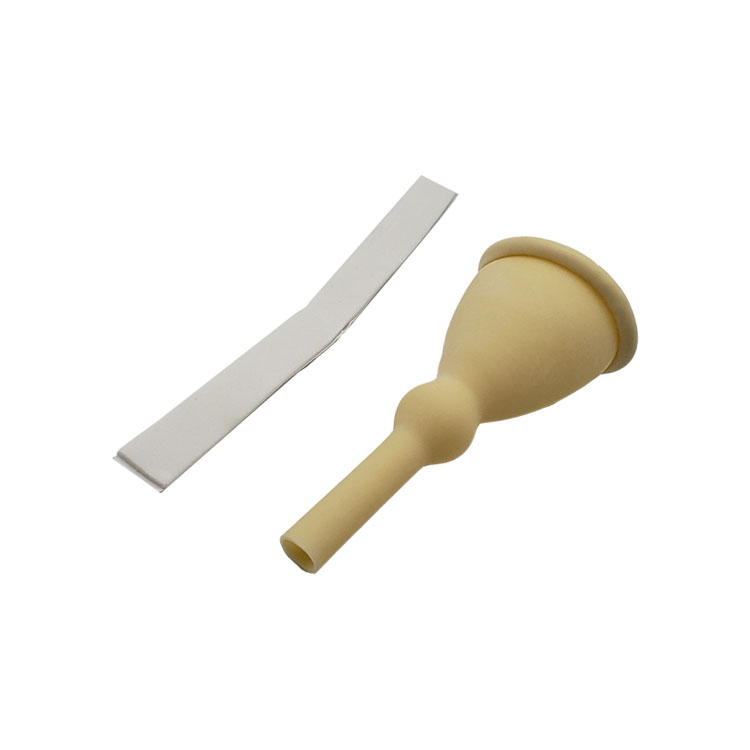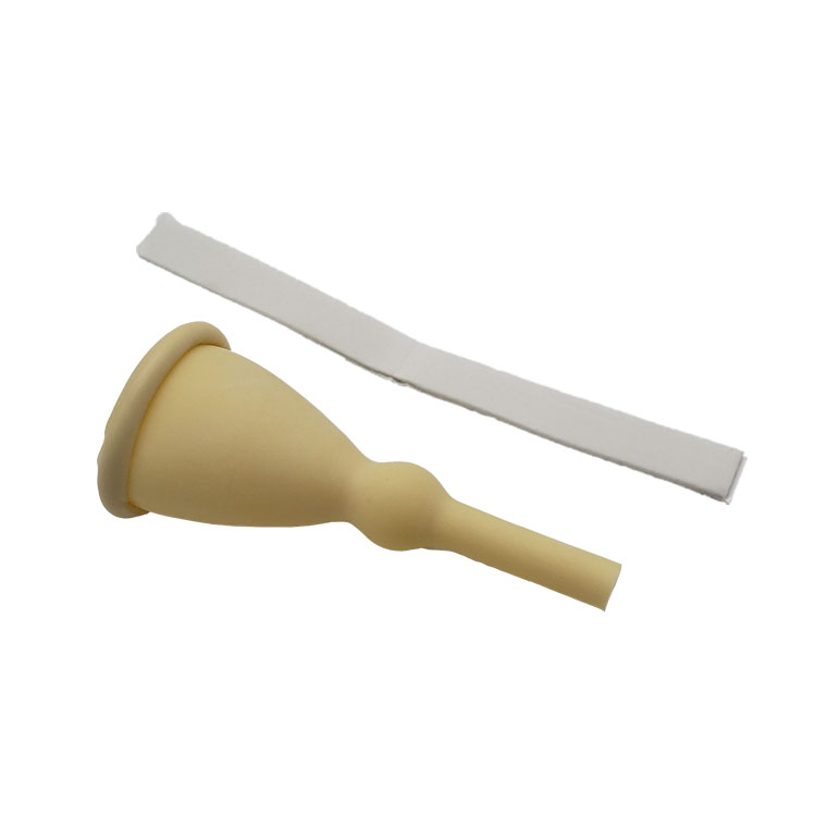 3. Consists of a latex sheath that connected to a 2-inch drain tube, as well as an adhesive strip to hold the male external