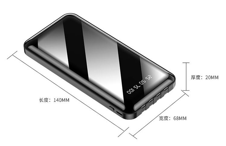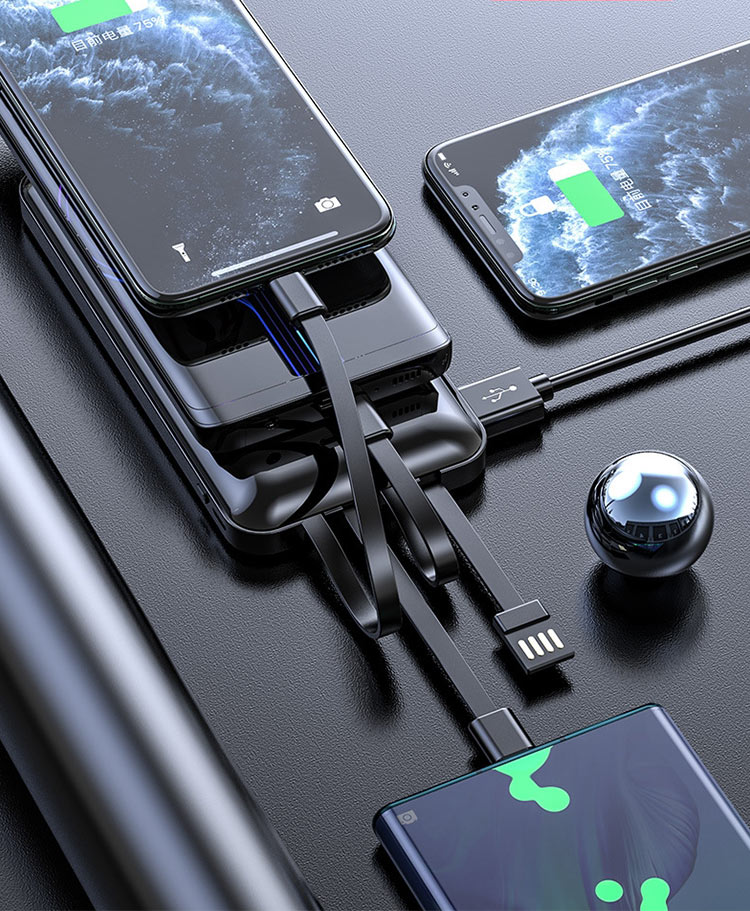 Micro USB, type-c, Lightning wire discharging and USB 2.0 wire charging. 4IN1