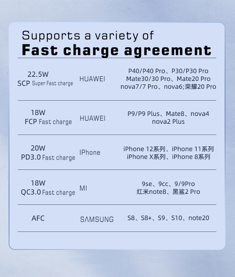 PD3.0, QC3.0 PD22.5W PD20W PD18W QC18W FCP SCP quick charge, Ultra-Fast EV Charging 10000mAh/20000mAh power bank.