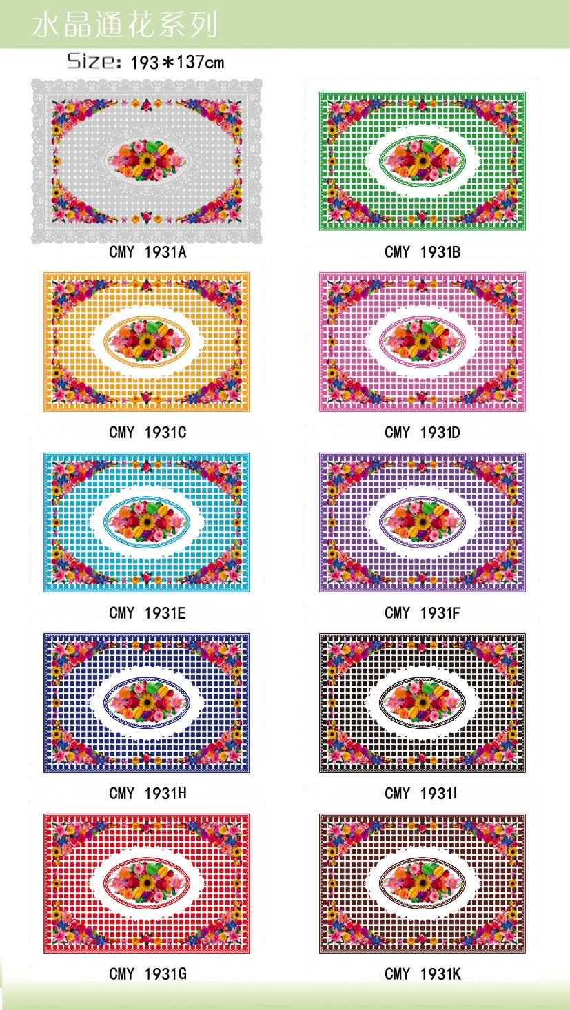 Foshan Shengmeiyue Plastic Co., Ltd.- we are a manufactor which is located in Foshan, China. We specilized in produce PVC tablecloth and placemat. There are more than 100 different categories of tablecloth and placemat with more than 500 patterns/colors, which can cater for different tastes from different coutries and markets. Our prices and services are much competitive in the field.With strict quality requirements and advanced and comprehensive quality test equipment, our quality control department practically implements the quality control in every link from material purchase channel, to the monitoring of every production process, to product delivery, which has laid a firm foundation for the company to enlarge market share, and realize the high quality and high demand for refrigeration products.Our Product Lines:I. PVC TableclothII. PEVA TableclothIII. PVC/PP/EVA placemat.